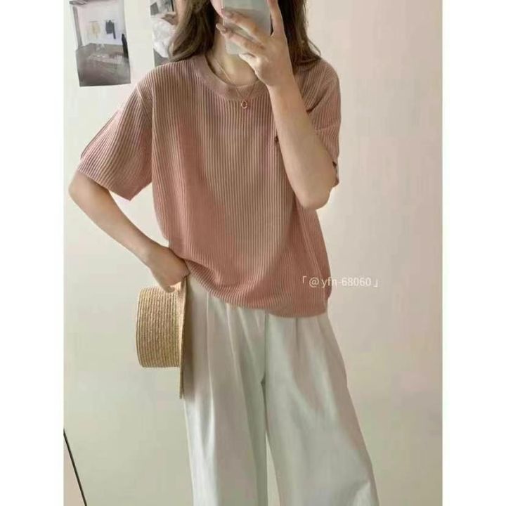 夏季新款女装宽松简约净版竹节麻冰丝针织短袖,独立包装,均码面料柔软舒适...