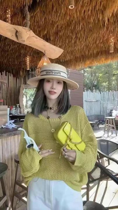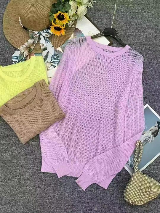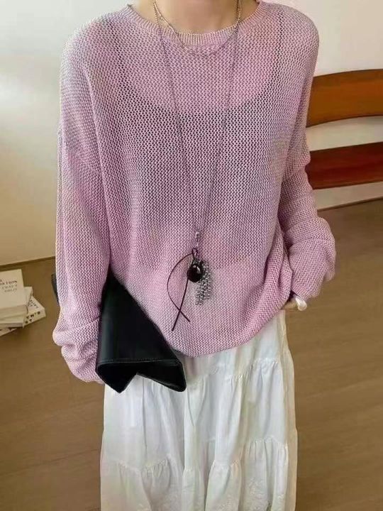 春夏新款多巴胺甜美清新宽松薄款长袖镂空针织小衫,独立包装,均码宽松版,...