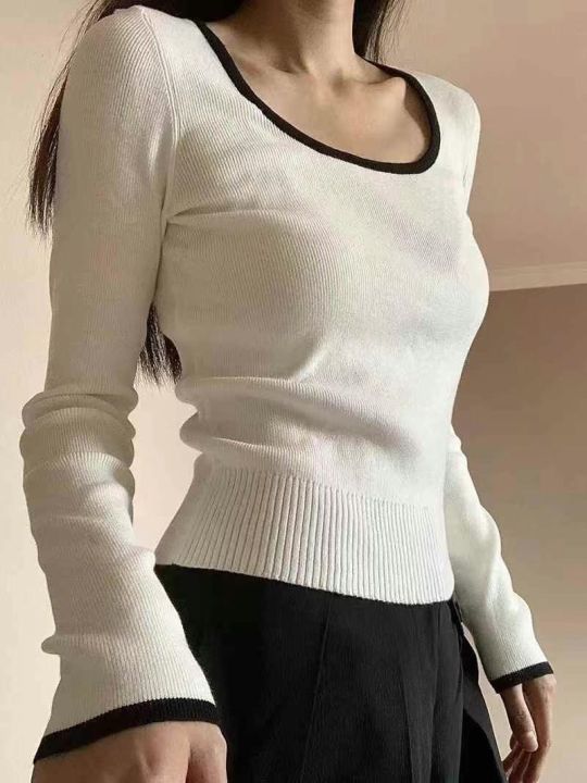 拼接圆领长袖衫 打底小衫女 2025春季新款欧货针织衫 韩系修身撞色靓妹上衣...