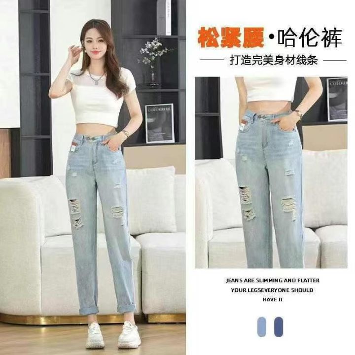 春夏新款女装洗水棉破洞牛仔老爹哈伦裤,独立包装带吊牌,码数XS—3XL码(...