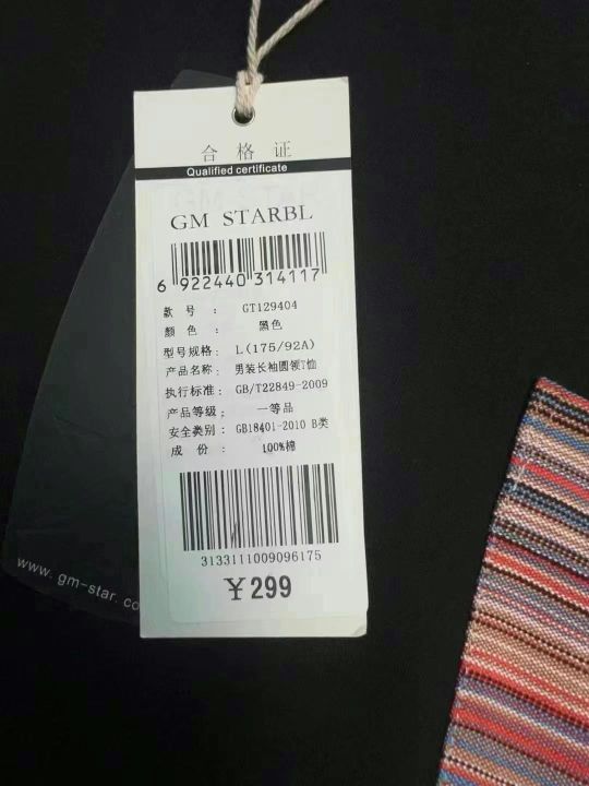 品牌男士纯棉长袖立领T桖500件,独立原包装带吊牌,专卖店质量,货品干净整...