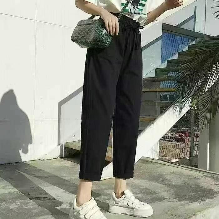 夏季休闲女装学生九分裤子韩版宽松运动哈伦裤百搭高腰阔腿裤薄款,数量704...