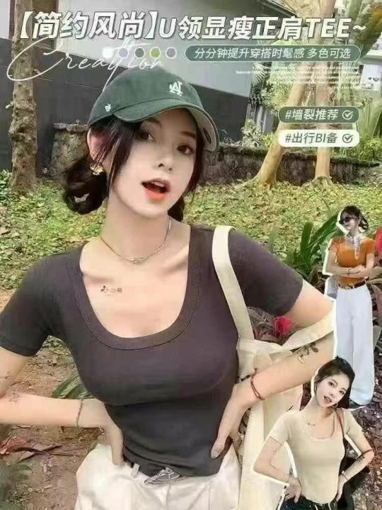 全清6.5冰丝性感短袖t恤女夏季新款修身显瘦辣妹纯欲风上衣,125件高弹力,...