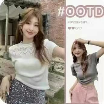 夏季新款甜美镂空洋气小众设计感百搭针织短袖,独立包装,均码面料柔软舒适...