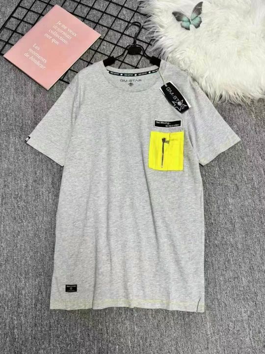 品牌GM-SART男士纯棉夏装600件短袖圆领休闲口袋拉链T恤上衣,整款两色,橙...