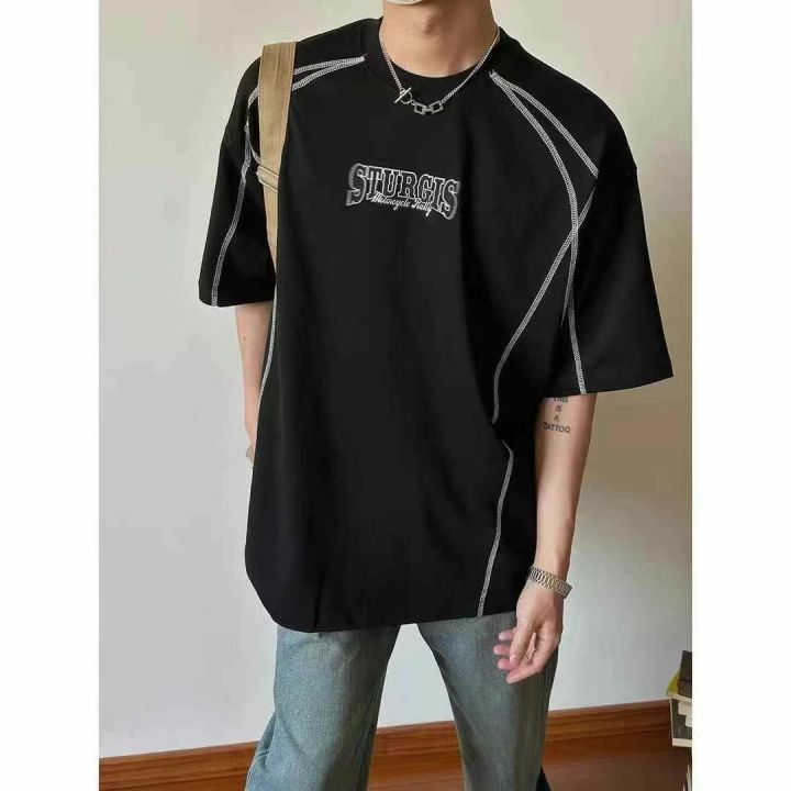 [月亮]:9.5清178件(不分货)[月亮]:美式潮牌线条拼色设计宽松T恤[月亮]...