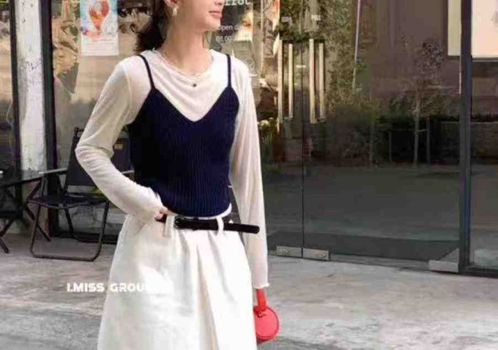 品牌原单女装早秋新款复古港风chic叠穿v领针织吊带背心马甲+设计款镂空针织...