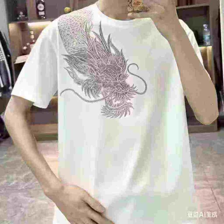 全清7.8元/件(2380#货号)194件新中式国风复古龙纹刺绣圆领辣妹短袖,单款...