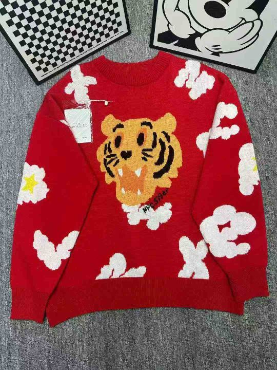 潮牌同款虎年限定云朵虎头宽松圆领毛衣男女同款上衣,独立包装带吊牌,均码...