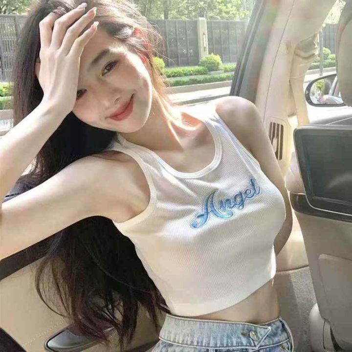 ⭐⭐230件左右时尚洋气设计感螺纹刺绣性感辣妹短款背心,品质佳,整款两色...