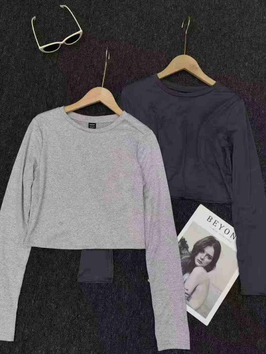 减龄气质休闲长袖打底衫韩版短款露脐T恤女秋装修身显瘦上衣百搭,没独立包...