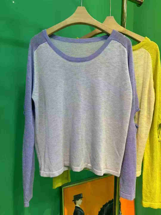 100件左右靓妹韩系休闲薄款透气显瘦撞色插肩袖防晒罩衫长袖T恤,均码,独立...