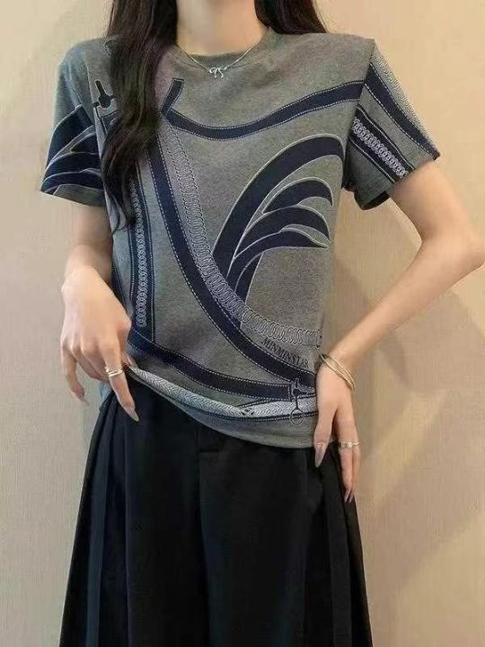 清8.8分货➕1高品质夏季新款圆领灰色纯棉短袖T恤时尚高级印花独特设计感小...