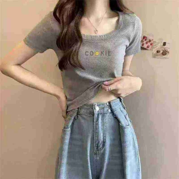 全清价6.5精梳螺纹正肩短袖T恤女甜辣风修身短款辣妹上衣,独立包装,码数2-...
