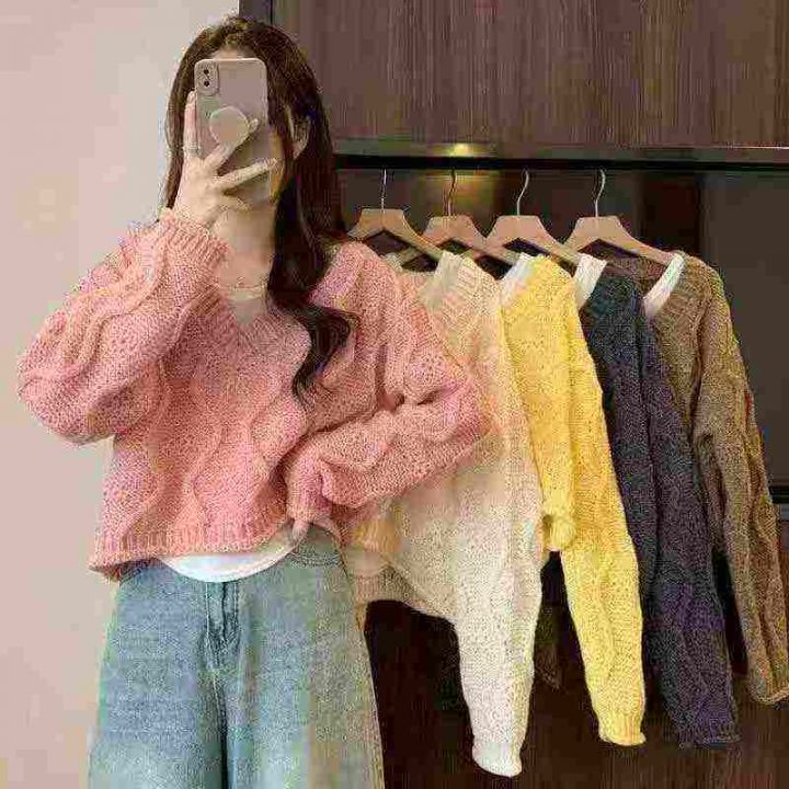别致镂空短款宽松针织毛衣上衣,独立包装,均码,260件,清6.5,分➕5毛...