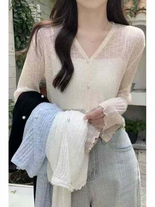 早秋新款韩版宽松净版简约竹节冰麻长袖针织开衫,独立包装,均码面料柔软舒...