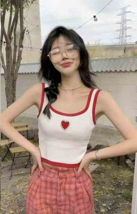 夏季新款纯欲甜辣妹撞色重工订珠刺绣针织背心,独立包装,均码面料柔软舒适...