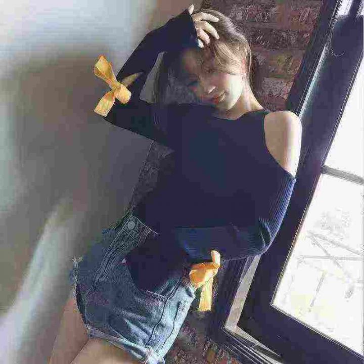 慵懒风毛衣女套头长袖韩国露肩上衣秋冬针织衫,独立包装均码,500件左右,...