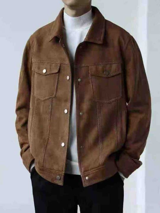 全清福利24.8元男士新款仿麂皮绒夹克潮流帅气休闲翻领工装外套上衣,独立包...