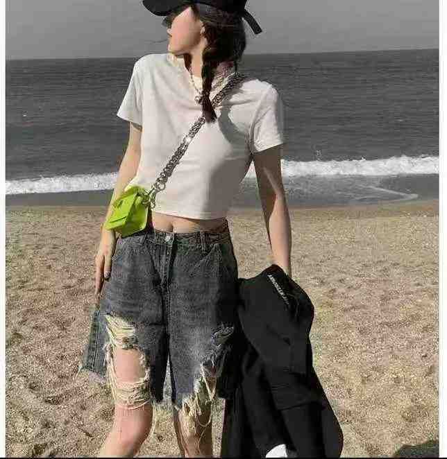 夏季新款女装破洞设计款洗水棉牛仔短裤,独立包装带腰卡,码数S-2XL码,100...