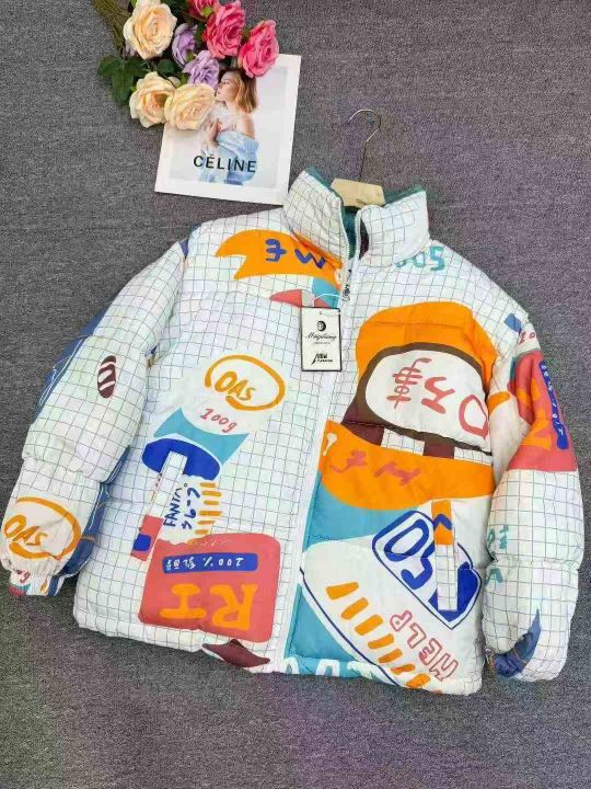300左右\'两面穿涂鸦立领棉衣女冬季潮流chic加厚棉袄百保暖情侣面包服外套...