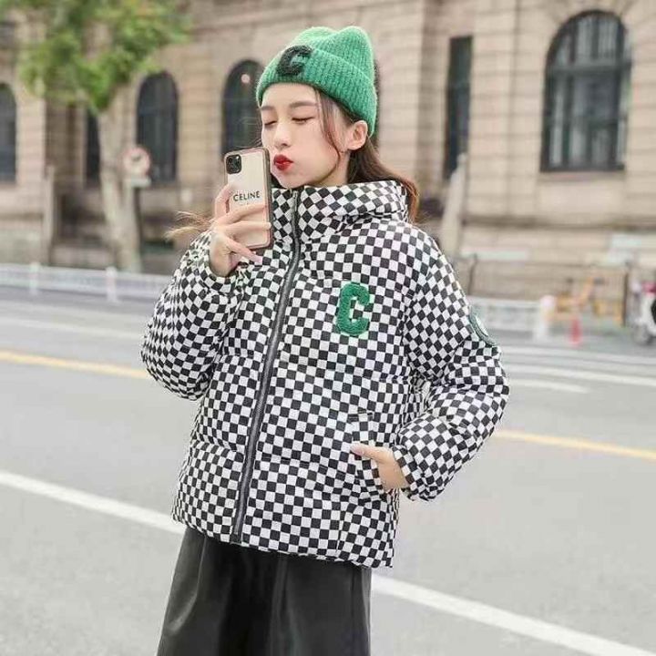 新款爆款,琼斯维格棋盘格羽绒棉衣女短款冬季爆款小个子面包服棉袄外套潮,...