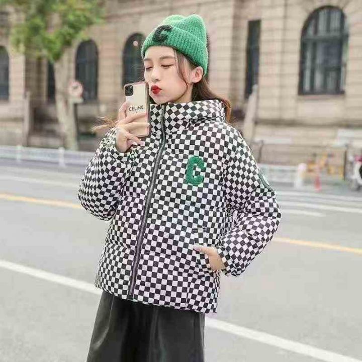 新款爆款,琼斯维格棋盘格羽绒棉衣女短款冬季爆款小个子面包服棉袄外套潮,...