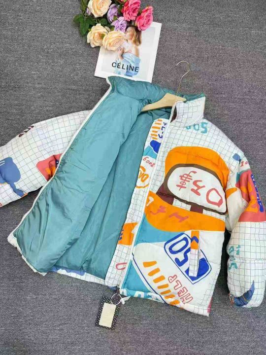 300左右\'两面穿涂鸦立领棉衣女冬季潮流chic加厚棉袄百保暖情侣面包服外套...