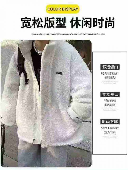 [啤酒]天猫在售两面穿棉服男女秋冬季ins加绒羊羔毛外套韩版潮流PU皮棉衣加...