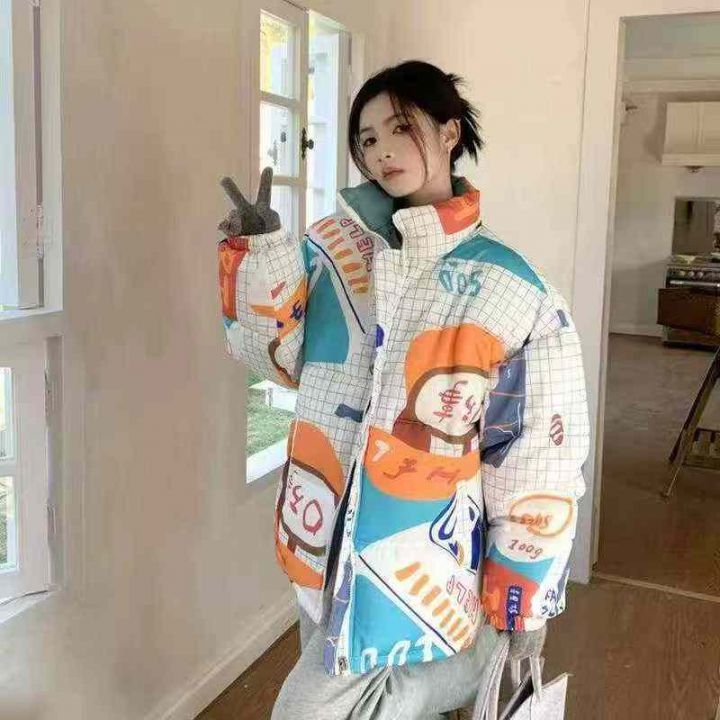 全清29.8,数量500件,两面穿涂鸦立领棉衣女冬季潮流chic加厚棉袄百保暖情...