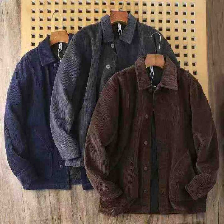 冬季复古灯芯绒棉服男士休闲潮流翻领保暖宽松纯棉加厚棉衣外套男,独立拉链...