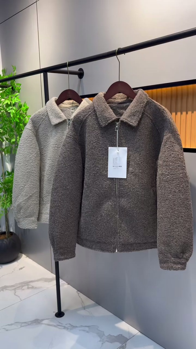 59.8羊毛摇粒绒呢子羽绒服男冬季宽松翻领短款简约有型气质款[烟花][烟花][...