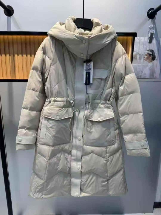 68.8长款设计师拼接皮连帽收腰女白鸭绒羽绒服整款 6个色 码数M-XL高端系列...