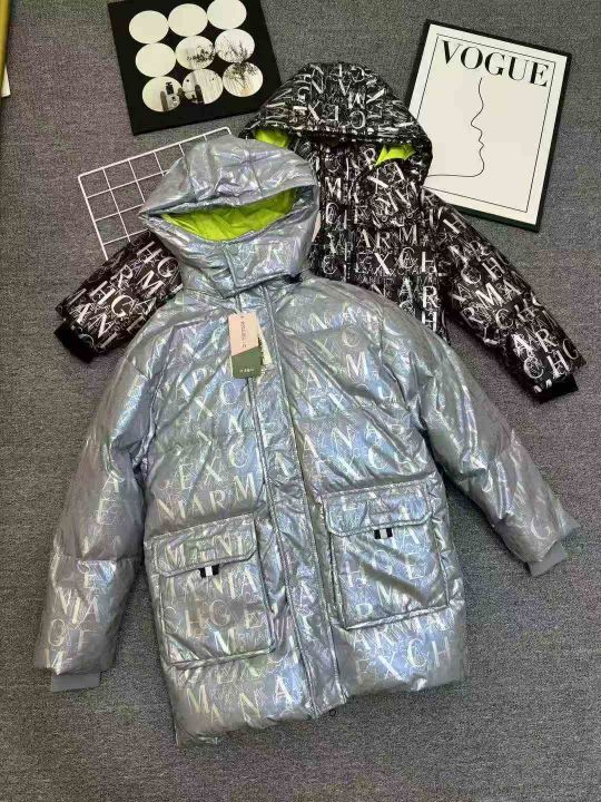 ①巴拉女童羽绒服冬季新款时尚潮流印花皮面炫酷保暖加厚外套,独立包装带吊...