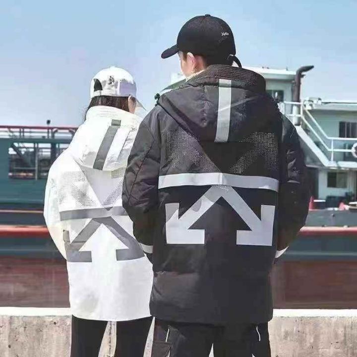2000件潮牌镂空设计反光印花男女同款羽绒服外套 尺码M-4XL (M码都可以穿到...