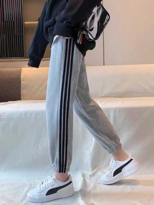 全清6.8分货+1男女春秋季运动休闲裤灰黑两色卫裤宽松束脚裤长裤 整款 独立...
