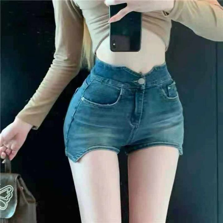 ☕️高弹力高腰不规则牛仔短裤女夏季新款超显大长腿性感辣妹包臀热裤潮 743...