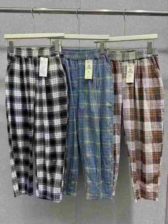 16清500条,夏季薄款格子哈伦裤九分绵绸休闲萝卜裤,双边带口袋,码数l-4xl...