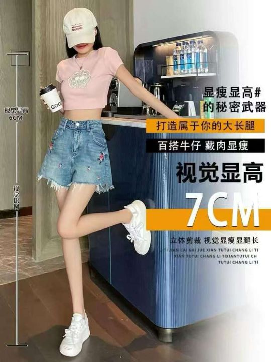 春意新款高弹力复古碎花刺绣牛仔短裤,独立包装带吊牌带防伪扣,码数XS-L码...
