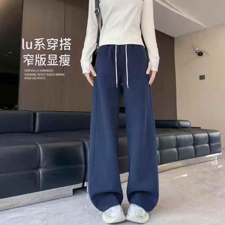 全清9.8元,九分微喇裤女高腰垂感宽松大码显瘦休闲阔腿春秋外穿百搭黑色裤...
