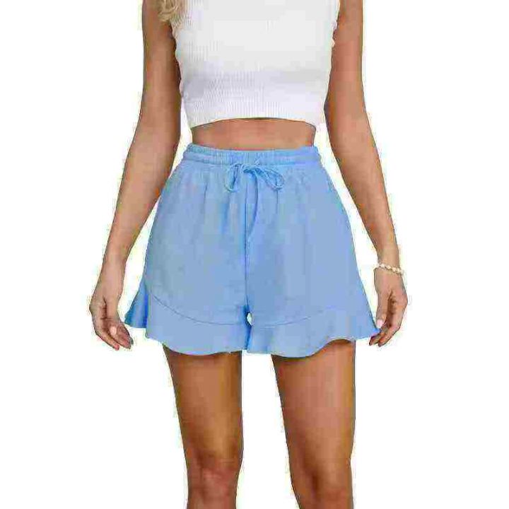 830条高品质棉麻荷叶边松紧腰抽绳设计短裤,宽松休闲大版型,单款多色,品...