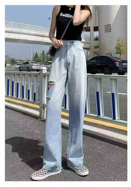 春秋新款洗水棉渐变色牛仔直筒阔腿裤,独立包装带腰卡,图片款,码数XS- 2X...
