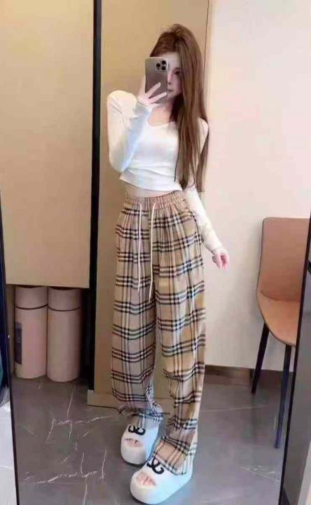 [转圈][转圈]高腰抽绳宽松阔腿卡其格子裤,垂感柔软舒适休闲,独立包装码数...