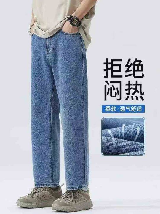 春夏季新款高弹力洗水棉网红复古浅蓝色男女同款牛仔老爹裤,独立包装带吊牌...