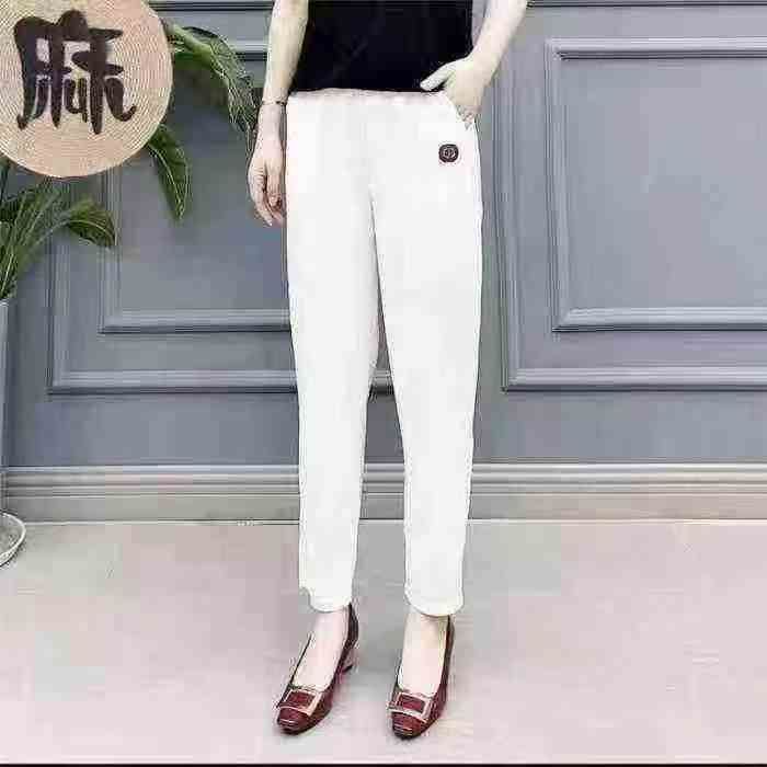 棉麻裤女夏季薄裤子女宽松中年妈妈显瘦女士休闲裤码数:1-4码(S-XL码)数...