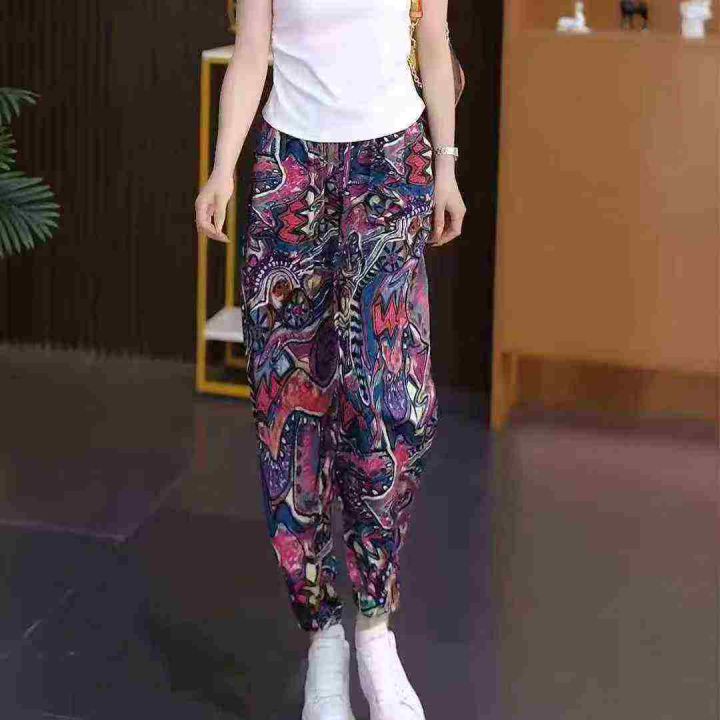 上新全清:5.8一件民族风印花遮肉显瘦宽松百搭休闲裤,[爱心]280件左右,码...