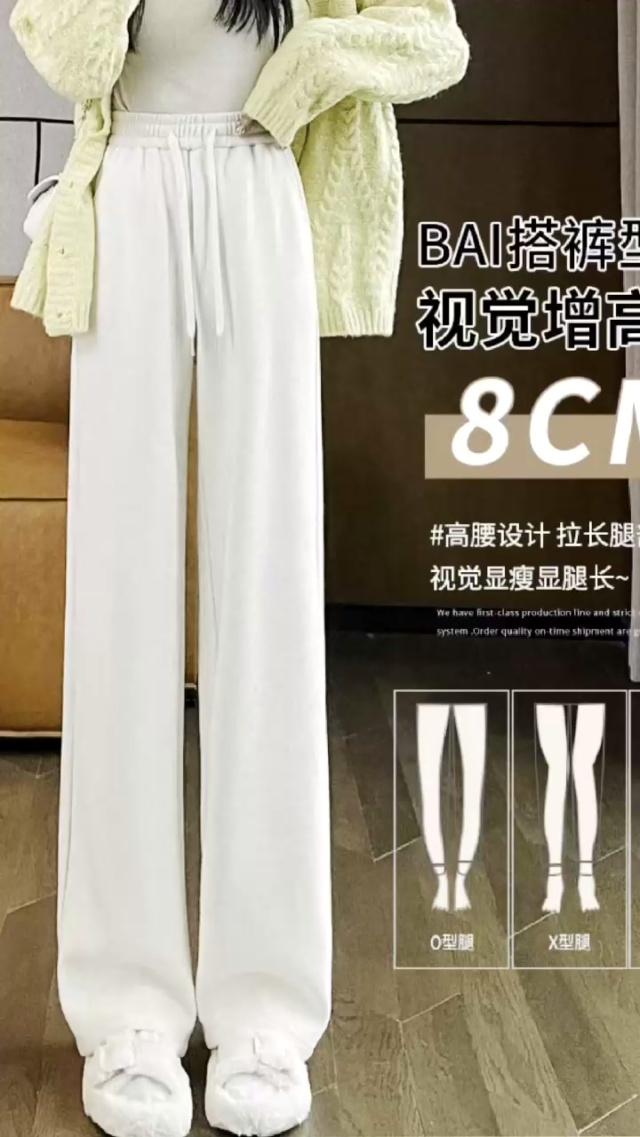 11800条\'初中生雪尼尔阔腿裤女秋冬季高腰垂感窄版直筒宽松加绒慵懒休闲裤\...
