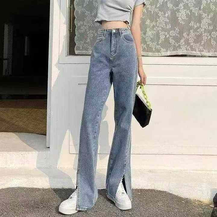 秋季新款洗水棉直筒阔腿开叉设计款牛仔裤,独立包装带吊牌,码数XS--2XL码...
