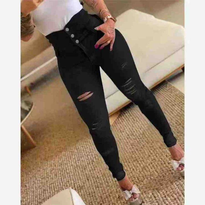 秋季新品外贸原单高弹力洗水棉破洞牛仔小脚裤,独立包装,码数S--XL码,480...
