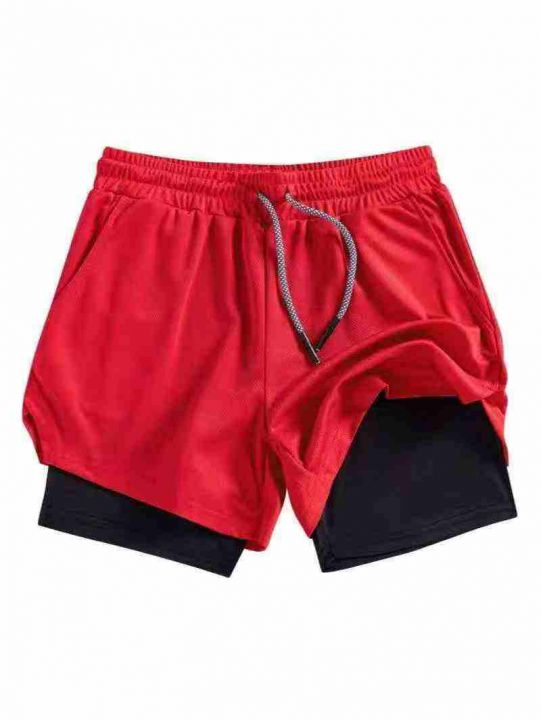美式运动短裤男宽松排汗速干假两件防磨裆短裤篮球跑步训练健身,独立包装,...